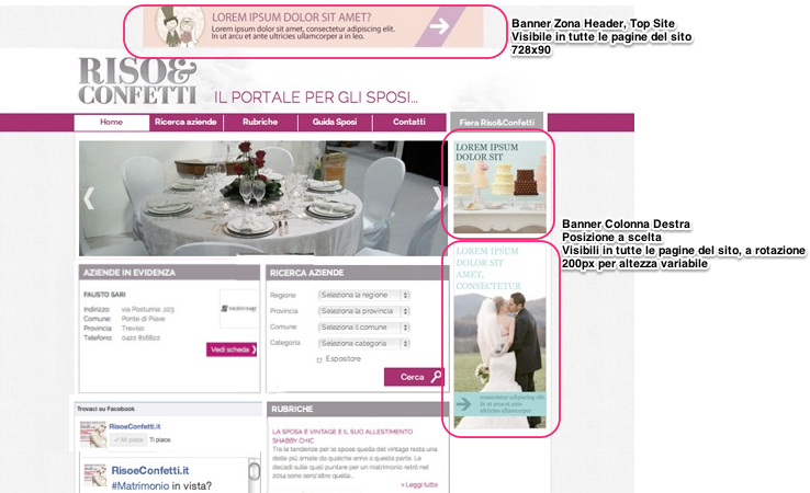 Inserimento banner promozionale abbinato a link a scelta in Newsletter ufficiali Riso&Confetti inviate in prossimità degli eventi di Pordenone e Treviso ad un target di futuri sposi.